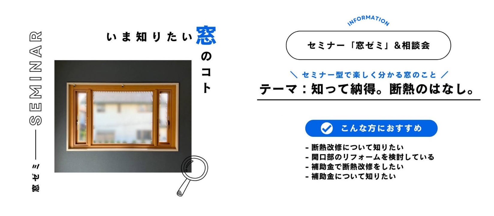 お家の断熱は窓から。知ってお得な「窓について」の定期開催セミナー。最新の補助金情報もお届けします。
